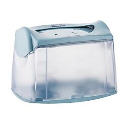 Zásobník HARMONY Professional na skladané servítky stolový malý. Voľne stojaci stolový zásobník z ABS plastu s pružinou, ktorá servítky posúva k otvoru na vyťahovanie. Uzamykateľný západkou. Kapacita 200 servítkov. Farba číra, kryt a podstavec tyrkysový.| Vlastnosti produktu | |