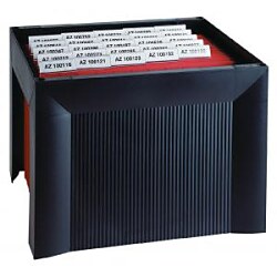 Zásobník HAN vhodný na závesné obaly A4 s prístupom zhora. Kvalitné prevedenie, jednoduchá montáž, možnosť nastavenia viacerých zásobníkov na seba. Gumené podložky zabraňujú kĺzaniu a šetria povrch pracovnej plochy. Kapacita cca 23 závesných obalov typu V.| Vlastnosti produktu | |