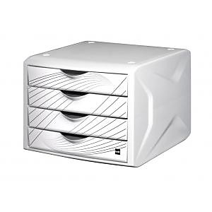 Stohovateľný box z odolného polypropylénu so štyrmi zatvorenými zásuvkami a dekoráciou na prednej strane zásuviek. Svieži dizajn. Rozmery (š × v × h) 262 × 212 × 330 mm.| Vlastnosti produktu | |