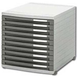 Box z modulárneho systému zásuvkových boxov s horizontálnym aj vertikálnym spájaním. Model so zatvorenými zásuvkami (bez predného krytu) výšky 25 mm a zarážkou chrániacou zásuvky pred úplným vysunutím. Súčasťou sú identifikačné menovky na označenie zásuviek.Telo boxov vo svetlosivej farbe, zásuvky tmavosivé. Rozmery (š × v × h) 30 × 30,7 × 38,2 cm.| Vlastnosti produktu | |
