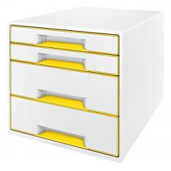 Box, dopĺňajúci produktovú radu Leitz WOW. Ľahko vysúvateľné 2 malé a 2 veľké zásuvky so zarážkou proti úplnému vysunutiu, jednoduché otváranie a zatváranie. Gumové nožičky pre lepšiu stabilitu, rozlišovač na popis zásuvky. Rozmery 287 × 270 × 363 mm. Farba perleťovo biela/žltá.| Vlastnosti produktu | |