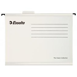Závesné obaly Esselte kolekcie Classic vyrobené z pevného kartónu. Lisované dno obalu dovoľuje zvýšiť kapacitu na 30 mm. Súčasťou obalu je násuvný index z priehľadného plastu s výmenným papierovým štítkom. Formát A4, rozpätie vodiacich líšt 330 mm.| Vlastnosti produktu | |