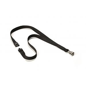 Textilný remienok s hodvábnou štruktúrou a svetlou kovovou karabinkou. Šírka remienka 15 mm, dĺžka 44 cm. Farba čierna.| Vlastnosti produktu | |