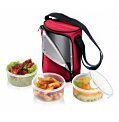 Pokrmy uložené v dózach v uzatvorenej termotaške si ďalej udržia svoju teplotu - zostávajú horúce alebo studené, pri prenášaní nevytekajú. Dózy je možné použiť aj samostatne na skladovanie potravín v chladničke, mrazničke a ohrievanie pokrmov v mikrovlnnej rúre, sú vybavené vodotesným aj vzduchotesným uzáverom. Materiál odolný plast s kvalitným silikónovým tesnení