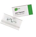 Priehľadná visačka s európskym štipcom, umiestneným na kratšej strane visačky. Dodávaná s papierovou kartičkou rozmerov 90×60 mm. Model, pri ktorom po uzavretí štipca nie je možné menovku vybrať. Náhradné papieriky obj. kód DU145702. Balenie 25 ks.Rozmery: 60x90 mm