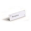 Obojstranne čitateľná stolová menovka z pevného PVC, vhodná na konferencie, recepčné pulty, ceny tovarov a popis produktov. Dodávaná s vymeniteľnou prázdnou kartou. Väčšie balenie 25 ks.Rozmery: >61x150 mmVýrobca: Durable