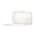 Uzavretá visačka na jednu plastovú kartu zo silného priehľadného nepružného plastu, chrániaca karty z oboch strán. Vkladanie kariet po kratšej strane. Možnosť použitia horizontálne aj vertikálne, kombinovateľná s klipom, remienkom a retiazkou. Balenie 10 ks.