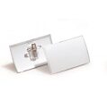 Elegantné visačky z pružného plastu s matným povrchom a horizontálnym zaoblením. Uchytenie na zadnej strane štipcom alebo zatváracím špendlíkom. Náhradné papieriky obj. kód DU145302. Balenie 25 ks.Rozmery: 75 x 40 mm