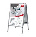 Zobrazujte informácie a reklamu na propagáciu svojho podnikania a služieb vo verejných priestoroch v oboch smeroch pomocou plagátového displeja Bi-Office A-Frame. Je to jednoduché, stačí zdvihnúť 4 hliníkové okraje, odstrániť kryciu fóliu z PVC a vložiť plagát. Číre antireflexné PVC fólie držia váš plagát na mieste a chránia ho pred poveternostnými vplyvmi, čím zais