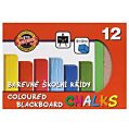 Farebné kriedy na školské tabule. Rozmery 12 x 12 x 100 mm. Dodávané v sade 12 farieb (biela, okrová, oranžová, červená, karmínová, svetlomodrá, tmavomodrá, svetlozelená, tmavozelená, žltá, hnedá, fialová). Väčšie balenie 40 sád.
