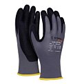 rukavice z kvalitnej pletenej nylonovej tkaniny s elastanom v šedej farbe, v úchopovej časti potiahnuté ultra jemnou nitrilovou penou s čiernym bodkovanímurčený pre montáž, skladovanie, strojárstvo, servis, prepravu, stavebníctvo, opravy, priemyselné, poľnohospodárske, záhradné a hobby činnostipovlak z ultrajemnej nitrilovej peny poskytuje veľmi vysokú odolnosť proti oderuvyso