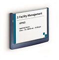 Moderná informačná tabuľka na dvere s lemom v atraktívnej modrej farbe. Predný panel sa otvára na jedno zatlačenie, a tým sa jednoducho sprístupnia vložené popisné papiere, ktoré sa môžu vymieňať podľa potrieb. Tabuľka je ideálna do kancelárií, úradov, škôl, univerzít a hotelov. Súčasťou balenia je montážna sada s názorným návodom. Namiesto pevného montovania m