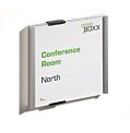 Informačná tabuľka na dvere. Štylizovaná tabuľka vo vrúbkovanej úprave, spodná časť z vysoko kvalitného hliníka, fixujúce spojky v čiernej farbe. K podkladu môže byť zadnou časťou priskrutkovaná alebo nalepená. Text je chránený neoslňujúcim akrylátovým krytom, ktorý pridržiavajú dve fixujúce spojky. Súčasťou balenia je montážna sada s názorným návodom a či