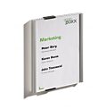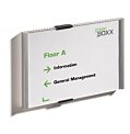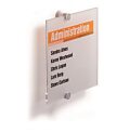 Tabuľka na dvere z novej rady v elegantnom, atraktívnom, a zároveň jednoduchom dizajne. Dodávaná s 2 polopriehľadnými vnútornými listami, vhodnými na farebnú alebo čiernu potlač. Listy sa vložia medzi akrylové panely tabuľky a tabuľka sa prichytí k stene alebo dverám 2 veľkými hliníkovými skrutkami. Ľahká montáž, názorný návod je priložený.Rozmery: 210x148 mmUchyte