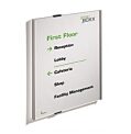 Informačná tabuľka na dvere. Štylizovaná tabuľka vo vrúbkovanej úprave, spodná časť z vysoko kvalitného hliníka, fixujúce spojky v čiernej farbe. K podkladu môže byť zadnou časťou priskrutkovaná alebo nalepená. Text je chránený neoslňujúcim akrylátovým krytom, ktorý pridržiavajú dve fixujúce spojky. Súčasťou balenia je montážna sada s názorným návodom a či