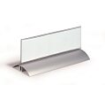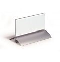 Štýlová stolová menovka s hliníkovým podstavcom. Unikátny uchytávací systém zabraňuje samovoľnému alebo neželanému vysunutiu menovky.Čítanie z oboch strán. Ideálna na konferencie, porady alebo miesta na styk so zákazníkom. Balenie 2 ks.Rozmery: 61 x 210 mm