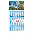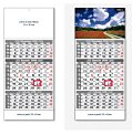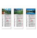 Rozmery: 295 x 663 mm. ROZSAH: 12 listov. KALENDÁRIUM: 3-mesačné s menami SK+CZ názvy mesiacov a dní v SK, CZ, UK, DE, HU. VÄZBA: šitá s perforáciou. REKLAMNÁ POTLAČ: 295 x 183 mm, 295 x 60 mm. BALENIE: 50 ks.