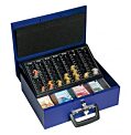 Pokladnička vybavená mincovou priehradkou s ôsmimi oddielmi na eurá a centy a štyrmi prístupnými priehradkami na bankovky. Pena na vnútornej strane veka na zabránenie premiešania mincí pri prenose, dve madlá na prenos pokladničky. K zámku sú dodávané dva kľúče. Rozmery: 357×103×275 mmFarba: modrá