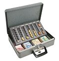 Pokladnička vybavená mincovou priehradkou s ôsmimi oddielmi na eurá a centy a štyrmi prístupnými priehradkami na bankovky. Pena na vnútornej strane veka na zabránenie premiešania mincí pri prenose, dve madlá na prenos pokladničky. K zámku sú dodávané dva kľúče. Rozmery: 370×100×280 mmFarba: sivá