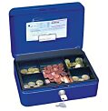 Uzamykateľná pokladnička s tvarovaným úchytom, plastovou priehradkou na mince a 2 kľúčami. Pod vekom zabudovaný klip na prichytenie bankoviek ako prevencia pred ich odfúknutím vetrom. Materiál pevná oceľ.Rozmery v mm: 250x180x90Farba: modrá