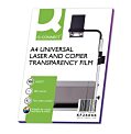Priehľadné polyesterové fólie na spätnú projekciu. Formát A4. Vhodné pre použitie v čiernobielych a farebných kopírkach a laserových tlačiarňach, na obojstranné použitie. Bez podkladového papiera. Hrúbka 100 µm. Balenie 100 kusov.