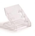 Jednoduchý a zároveň štýlový stolový stojan na vizitky. Dodávaný so samolepiacimi protišmykovými podložkami. Kapacita 50 vizitiek maximálnej šírky 100 mm. Farba číra. Kapacita: 50 vizitiek