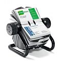 Rotačný vizitkár s 200 obojstrannými vreckami rozmerov 104 × 72 mm na 400 vizitiek. Dodávaný s 25 abecednými rozraďovačmi A - Z. Ľahký prístup k vizitkám, rýchla obsluha vďaka špeciálnemu rotačnému mechanizmu. Farba čierna.