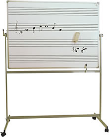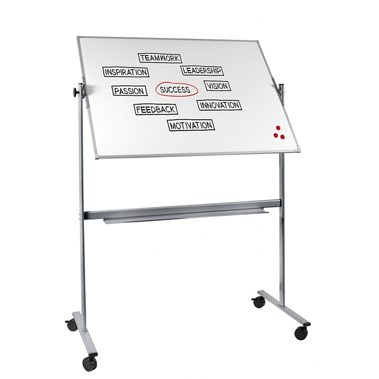 Dvojnásobný tabuľový priestor,pohybom ju preklopíte do potrebnej pozície a zaistíte. Má priestornú odkladaciu lištu na písacie potreby, magnety a iné pomôcky. Je pojazdná na kovovej konštrukcii na kolieskach s brzdou. Samotná tabuľa je v hliníkovom ráme povrch keramický.
