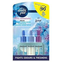Ambi Pur 3Volution Spring Awakening nepretržite odstraňuje pachy a strieda 3 vzájomne sa doplňujúce vône pre sviežosť, ktorú budete vnímať. Vydrží až 90 dní (pri používaní 12 hodín denne s nastavením najnižšej úrovne odparovania). Objavte krásu Spring Awakening s intenzívnejšou vôňou s väčším dosahom, ktorá naplní miestnosť vôní. Spring Awakening je ľahká vôňa zelene inšpirovaná jarnou prirodzenou sviežosťou Lenoru. Vnímajte pokoj, ktorý vás obklopí, keď sa vzduch naplní touto čistou a decentnou vôňou. U bežných elektrických osviežovačov si na vône rýchlo zvykneme a prestaneme ich vnímať. Ambi Pur Osviežovač vzduchu 3Volution sviežosť obnovuje tým, že sa každých 45 minút automaticky striedajú 3 ° vzájomne sa doplňujúce, vysoko kvalitné vône. Náplne Ambi Pur 3Volution používajte s odparovacím strojčekom 3 Volution, aby ste naplnili váš domov sviežosťou a vôňou, ktorú budete vnímať deň čo deň, týždeň čo týždeň. 3Volution taktiež umožňuje nastaviť intenzitu odparovania vône.| Vlastnosti produktu | |
