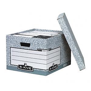 Veľká archívna krabica s odnímateľným vekom a bočnými výrezmi na uchytenie. Vhodná aj na archívne boxy. Steny spevnené zdvojenou vrstvou kartónu. Nosnosť 35,2 kg. Možnosť navyšovania do troch úrovní. Dodávaná v rozloženom stave naplocho. Väčšie balenie 20 ks. Farba sivá/-biela.| Vlastnosti produktu | |