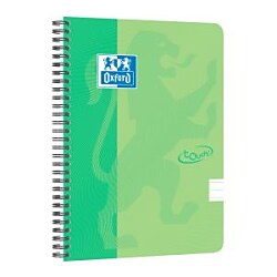 Blok špirálový Oxford Nordic Touch A5+/70 listov linajkový, zelený, na dvojitej čiernej špirále, dosky z tvrdého kartónu so soft touch povrchom, kompatibilný so SCRIBZEE, biely, dokonale hladký papier Optik Paper+, neprepíja, certifikácia EÚ ecolabel.| Vlastnosti produktu | |