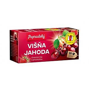 Aromatizovaný ovocný čaj s príchuťou Višňa a Jahoda. Porciovaný v nálevových vreckách.