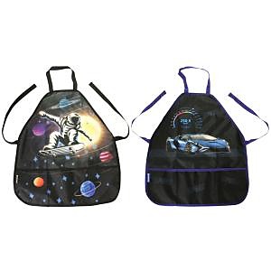 Detská maliarska/remeselnícka zástera v 2 rôznych vzoroch, s veľkým predným vreckom, s 3 vreckami na maliarske a remeselné potreby. Zapínanie na suchý zips pri krku a šnúrky vzadu, vrátane menovky. Materiál: polyester, univerzálna veľkosť: 54 x 46 cm. Motív pre chlapcov.| Vlastnosti produktu | |
