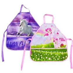 Detská zástera na maliarske a tvorivé potreby, 2 rôzne vzory, veľké predné vrecko s 3 vreckami na maliarske a tvorivé potreby, zapínanie na suchý zips pri krku a zaväzovanie vzadu, vrátane menovky, materiál polyester, univerzálna veľkosť 54x46cm| Vlastnosti produktu | |