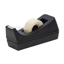 Stolový zásobník na lepiacu pásku rozmerov 19 mm × 33 m s nožom na odrezanie pásky. Dodávaný bez pásky. Farba čierna.| Vlastnosti produktu | |