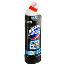 Domestos na vodný kameň v toalete. Gélový dezinfekčný prípravok na odstraňovanie vodného kameňa v toalete. Vďaka jedinečnému zloženiu sa udrží na povrchu dlhšie, aby odstránil všetok vodný kameň a likvidoval mikroorganizmy (baktérie, kvasinky, plesne, bakteriálne spóry a vírusy) žijúce v ňom. Udrží sa a pôsobí na zvislom povrchu, dokonca aj pod vodnou hladinou| Vlastnosti produktu | |