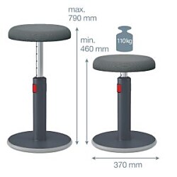 Ergonomická stolička Leitz Ergo umožňuje flexibilný pohyb medzi sedením a státím pri práci, podporuje pohyb svalov, zlepšuje držanie tela a zvyšuje hladinu energie. Má zaoblenú základňu, ktorá podporuje aktívny pohyb otáčaním a hojdaním. Pri práci zároveň posilňujete chrbtové svaly. Výšku možno ľahko nastaviť v rozmedzí 46-79 cm, stolička zostáva pevná a stabilná v akejkoľvek výške. Stolička je pohodlná a praktická, má sedadlo z priedušnej 3D peny potiahnuté vzdušnou sieťovinou protišmykovú základňu, ktorá nepoškodí podlahu. Maximálna nosnosť: 110 kg. Farba sivá.| Vlastnosti produktu | |