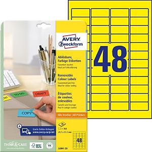 Odnímateľné samolepiace etikety STICK & LIFT odlepiteľné a znovu prelepiteľné (na bežnom povrchu až 5×) bez toho, aby zanechali stopy lepidla. Sú vhodné pre všetky druhy tlačiarní a kopíriek. Využiteľné najmä na každodenné pracovné činnosti, ako napr. vytváranie popisov, cenoviek, označovanie výrobkov, majetku a pod. Farba žltá. Etikety na hárku 48 ks. Balenie 20 hárkov.| Vlastnosti produktu | |