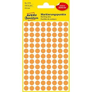 Kruhové etikety na ručný popis. Priemer 8 mm. Farba neónová oranžová. Etikety v balení : 416 kusov.| Vlastnosti produktu | |