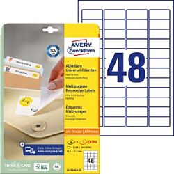 Odnímateľné samolepiace etikety odlepiteľné a znovu prelepiteľné (na bežnom povrchu až 5×) bez toho, aby zanechali stopy lepidla. Sú vhodné pre všetky druhy tlačiarní a kopíriek. Využiteľné najmä na každodenné pracovné činnosti, ako napr. vytváranie popisov, cenoviek, označovanie výrobkov, majetku a pod. Rozmery v mm : 45,7 × 21,2. Farba biela. Etikety na hárku 48 ks. Balenie 25+5 hárkov.| Vlastnosti produktu | |