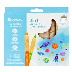 Sada 10 hrubých, stredne dlhých farbičiek, 3 v 1 - perfektná kombinácia farebnej ceruzky, akvarelu a pastelky v jednom. Každá ceruzka má extra veľkú tuhu, ktorá zaručuje výnimočné krytie a intenzívne farby, a to aj na tmavom papieri, dreve alebo skle. Farba tela ladí s tuhou, čo uľahčuje výber správnej farby. Vďaka svojej praktickej veľkosti (Ø 15 x D 100 mm) sa ceruzky pohodlne držia a sú ideálne pre deti aj dospelých. Sada sa dodáva v praktickej posuvnej krabičke s otvorom na zavesenie v európskom štýle, ktorá je vhodná na skladovanie aj na vystavenie v maloobchode.| Vlastnosti produktu | |