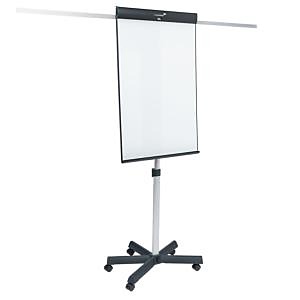 Flipchart atraktívneho dizajnu s lakovanou úpravou povrchu. Postranné ramená, vyklápací držiak papierových blokov s variabilným uchytením všetkých štandardných formátov a vyklápacia odkladacia lišta po celej šírke tabule na odkladanie popisovačov. Pevná základňa v tvare hviezdy s 5-timi kolieskami (2 z nich s aretáciou) pre ľahké posúvanie. Magnetický povrch umožňuje používanie magnetov a popisovanie za sucha stierateľnými popisovačmi, robustnou svorkou ľahko fixujete ideálnu výšku písania. Maximálna výška 205 cm, zastavaná plocha 72×60 cm, rozmery 105×68 cm, hmotnosť 13 kg.| Vlastnosti produktu | |