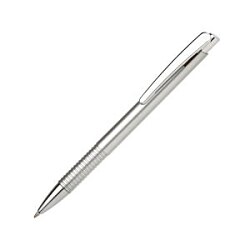 Guľôčkové pero plastové LASTI s vrúbkovaným úchopom a doplnkami v striebornej farbe. Modrá náplň X-20. Farba strieborná.| Vlastnosti produktu | |