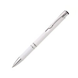 Plastové guľôčkové pero OIRA s kovovými doplnkami. Modrá náplň veľkoobjemová. Farba biela.| Vlastnosti produktu | |