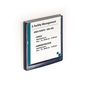 Moderná informačná tabuľka na dvere s lemom v atraktívnej modrej farbe. Predný panel sa otvára na jedno zatlačenie, a tým sa jednoducho sprístupnia vložené popisné papiere, ktoré sa môžu vymieňať podľa potrieb. Tabuľka je ideálna do kancelárií, úradov, škôl, univerzít a hotelov. Súčasťou balenia je montážna sada s názorným návodom. Namiesto pevného montovania môže byť tabuľka k povrchu aj prilepená.| Vlastnosti produktu | |