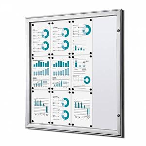 Ekonomický variant hliníkovej vitríny s protipožiarnym atestom do interiéru. S uzamykateľnými polykarbonátovými dveremi s hliníkovým orámovaním, ktoré sa otvárajú do strany. Lakovaná oceľová zadná stena vhodná pre magnety a popisovanie fixami. Dodávaná s dvoma kľúčmi k zámku.| Vlastnosti produktu | |