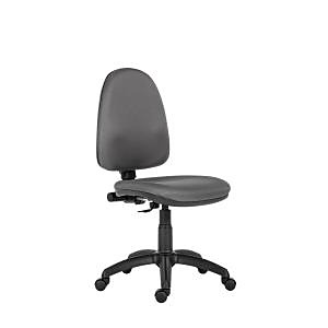 Čalúnená kancelárska stolička s vysokou opierkou.