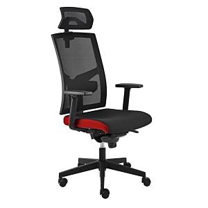 Kancelárska stolička vyššej kategórie z radu GAME s výškovo nastaviteľným čiernym sieťovaným operadlom s mechanickým zámkom a samostatne výškovo nastaviteľnou bedrovou opierkou.