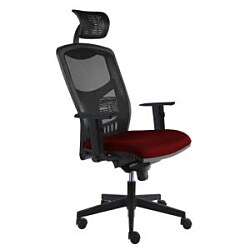 Moderná kancelárska stolička s vysokým fixným sieťovaným operadlom s výškovo nastaviteľnou bedrovou opierkou a s bohatým čalúnením sedadla.