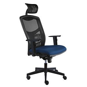 Moderná kancelárska stolička s vysokým fixným sieťovaným operadlom s výškovo nastaviteľnou bedrovou opierkou a s bohatým čalúnením sedadla.